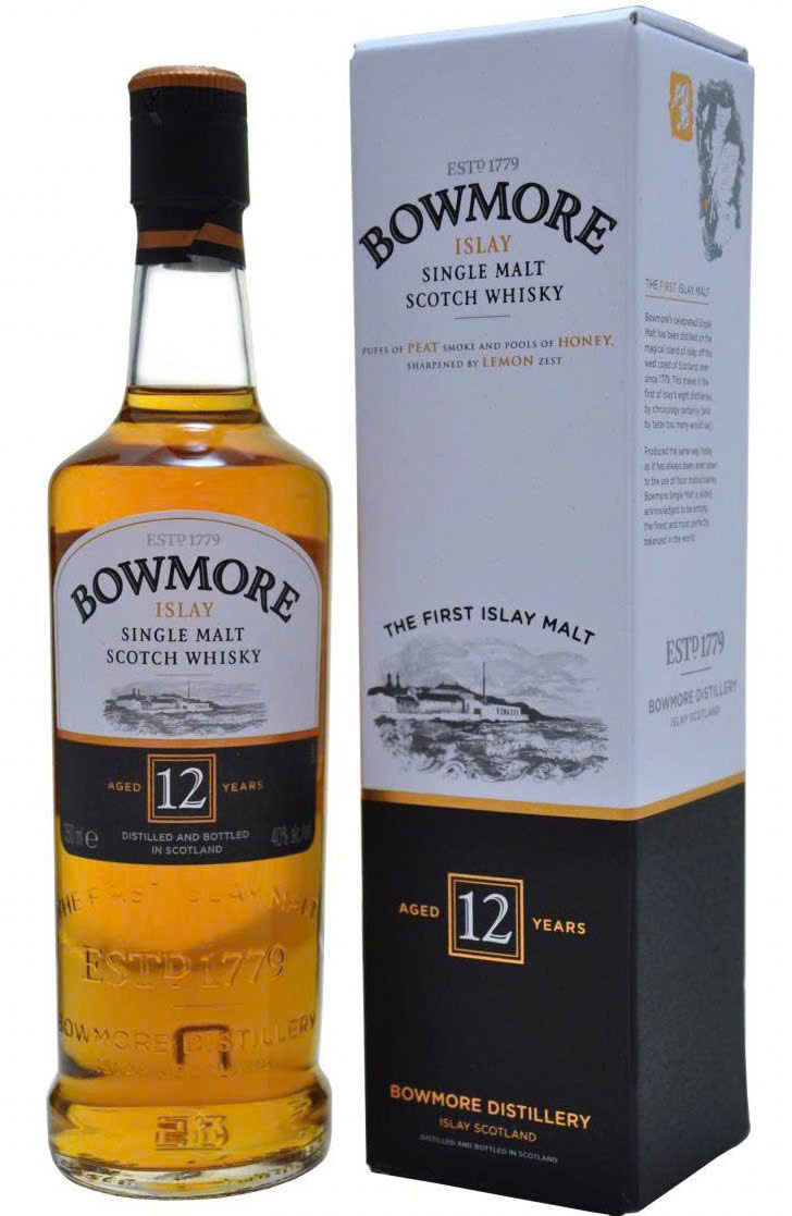 Mô tả sản phẩm Bowmore 12 : Được thành lập từ cách đây hơn 2 Thế kỷ vào năm 1779 , Bowmore được ghi nhận là nhà máy rượu đầu tiên trên đảo Islay , và cũng là nhà máy rượu lâu đời nhất trong toàn Scotland . Mạch nha Islay thì nổi tiếng bởi sự ám khói than bùn , và Bowmore cũng không ngoại lệ . Rượu Bowmore 12 đóng vai trò chủ lực của thương hiệu Bowmore . Bowmore 12 năm thật ấn tượng với mùi Khói nhẹ nhàng cùng vị Muối biển và Tảo biển tạo nên một loại rượu cân bằng và dễ uống