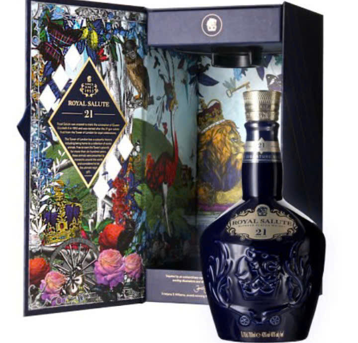 Royal Salute 21 Year Old được ra đời nhờ sự cộng tác của Sandy Hyslop ( Chivas Master Blended ) và nghệ sỹ thiết kế tài ba Kristjana S.Williams . Đây là một hướng đi mới theo xu thế phát triển thị trường mà Whisky Scotch đang hướng tới . Royal Salute 21 Year Old được thiết kế chai sứ thủ công nghệ thuật tinh xảo bởi các nghệ nhân nổi tiếng xứ Wede . Mỗi chai mất 5 _ 6 ngày để sản xuất . Chúng được điêu khắc trong đất sét Cornish , sau đó sấy khô tự nhiên và hoàn thiện bằng tay trước khi nung , để bảo vệ chất rượu quý giá ở bên trong