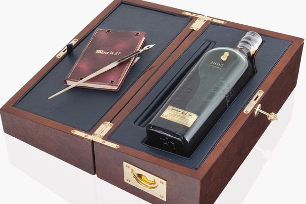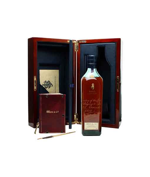 Hộp quà tặng bằng gỗ quý hiếm và hình người sáng lập Johnnie Walker được sơn bằng vàng lỏng . Theo một chuyên gia của hãng thì "Chai rượu này có giá khoảng 20.000 USD , nhưng không phải cứ có tiền là mua được ngay , mà chỉ dành cho đơn hàng đặc biệt"