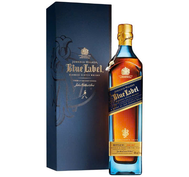 Blue Label được Diageo là chủ sở hữu của nhãn hiệu Johnnie Walker nhập khẩu và phân phối tại thị trường Việt Nam , là dòng sản phẩm cao cấp nhất của thương hiệu Johnnie Walker , số năm ủ rượu không được tiết lộ , dung tích chai 750 ml , nồng độ 40 % . Blue Label có hương vị hòa quện và sành điệu của Vanilia , mùi Khói than bùn , vị cay nồng của gỗ Sồi , vị nồng của Gia vị , vị êm dịu của Kem và Chanh . Dư vị ấm áp kéo dài và đáng nhớ