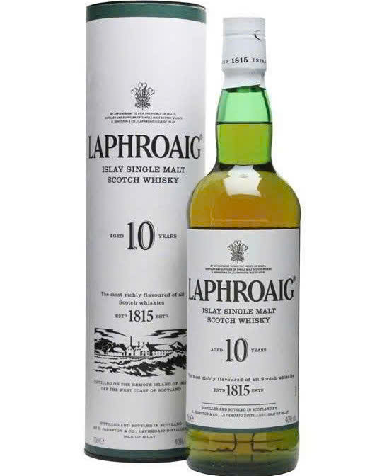 Rượu Laphroaig 10 thuộc dòng Whisky mạch nha khói của đảo Islay _ Scotland , được ra mắt tai thị trường Châu á , Châu âu và Bắc mỹ với mẫu chai cổ điển 750 ml/ 43 %