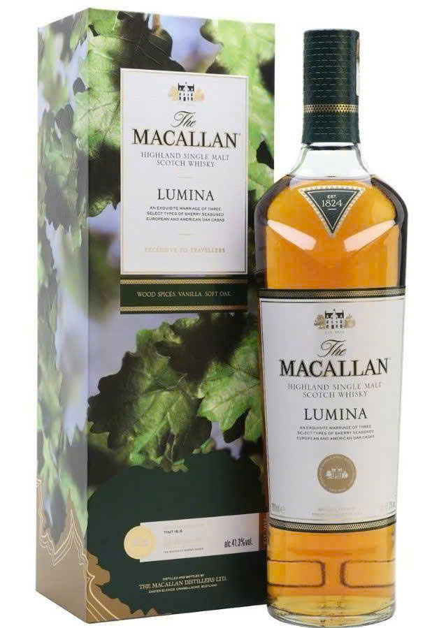 The Macallan Lumina khắc hoạ tầm nhìn về vòm cây và những tia nắng qua khe lá trong những cánh rừng gỗ sồi , để mô tả nỗ lực không mệt mỏi của nhà Macallan trong hành trình vạn dặm tìm kiếm gỗ sồi cho quá trình ủ rượu . Vẫn là vỏ chai hình trụ tròn truyền thống , nhưng sự cách điệu nhãn dán trên thân chai đã tạo ra cảm giác bắt mắt hơn , mới hơn , sang trọng hơn nhưng vẫn mang trong mình hình ảnh thương hiệu The Macallan . Có thể nói , trong những chai Highland Single Malt Scotch Whisky cao cấp phục vụ riêng cho quầy miễn thuế Duty Free , đây chính là đại diện đẹp mắt nhất