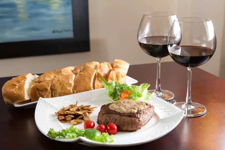 Hình ảnh : Thưởng thức Chateau Lande Berin Bordeaux Đỏ với Bò bít tết và Bánh mỳ