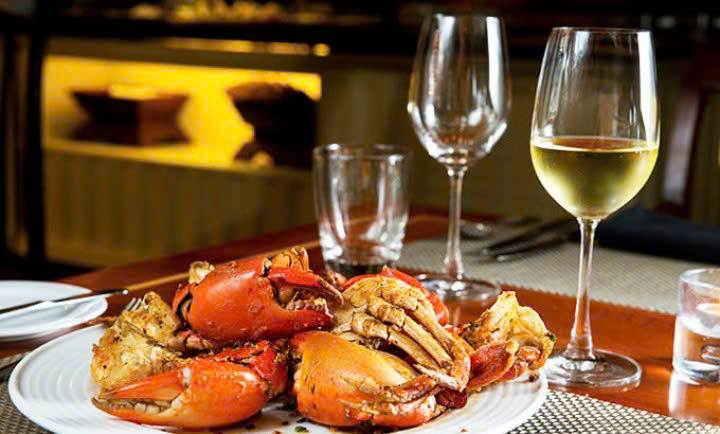 Hình ảnh : Thưởng thức rượu vang Pháp Chateau Lande De Bertin Trắng cùng với món ăn được chế biến từ Hải sản