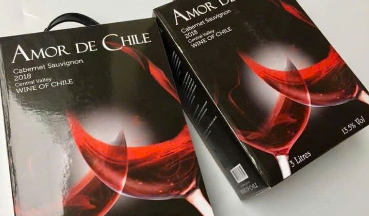 Rượu Vang Chile 3 Lít & 5 Lít được làm từ Giống nho Cabernet Sauvignon và được đóng trong túi Nilon bóng kính với một Van bịt kín , bao bên ngoài là hộp giấy xách tay , như một thay thế cho chai rượu vang truyền thống bằng thủy tinh . Vang Amor de Chile Hộp 3 Lít có độ cồn tương đối cao là 13,5 % , uống đậm miệng , giá thành phải chăng . Đây là dòng vang được sản xuất công nghiệp , có sản lượng bán ra nhiều nhất trên Thế giới