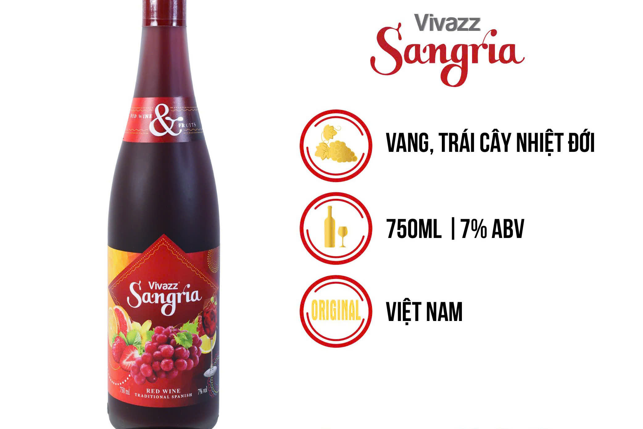 Vivazz Sangria Red Wine có mầu đỏ đậm , hương thơm nồng nàn của Trái cây chín và Thảo mộc . Vị ngọt ngào của Trái cây hòa quện với vị chua chát của vang đỏ tạo cảm giác sảng khoái phấn chấn tinh thần . Đây là một thức uống hiện đại dành cho các dịp gặp gỡ , liên hoan của giới trẻ hiện đại ngày hôm nay