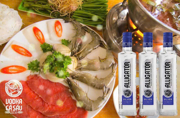 Hình ảnh : Vodka Cá Sấu Xanh với món ăn là Hải Sản