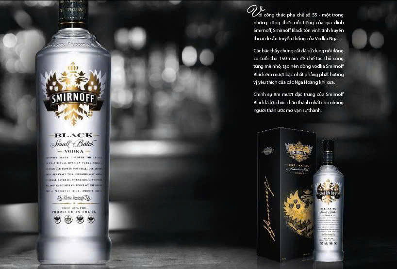 Với công thức pha chế số 55 , Một trong số những công thức nổi tiếng của Gia đình nhà Smirnov _ Smirnoff Black tôn vinh huyền thoại di sản truyền thống của Vodka Nga